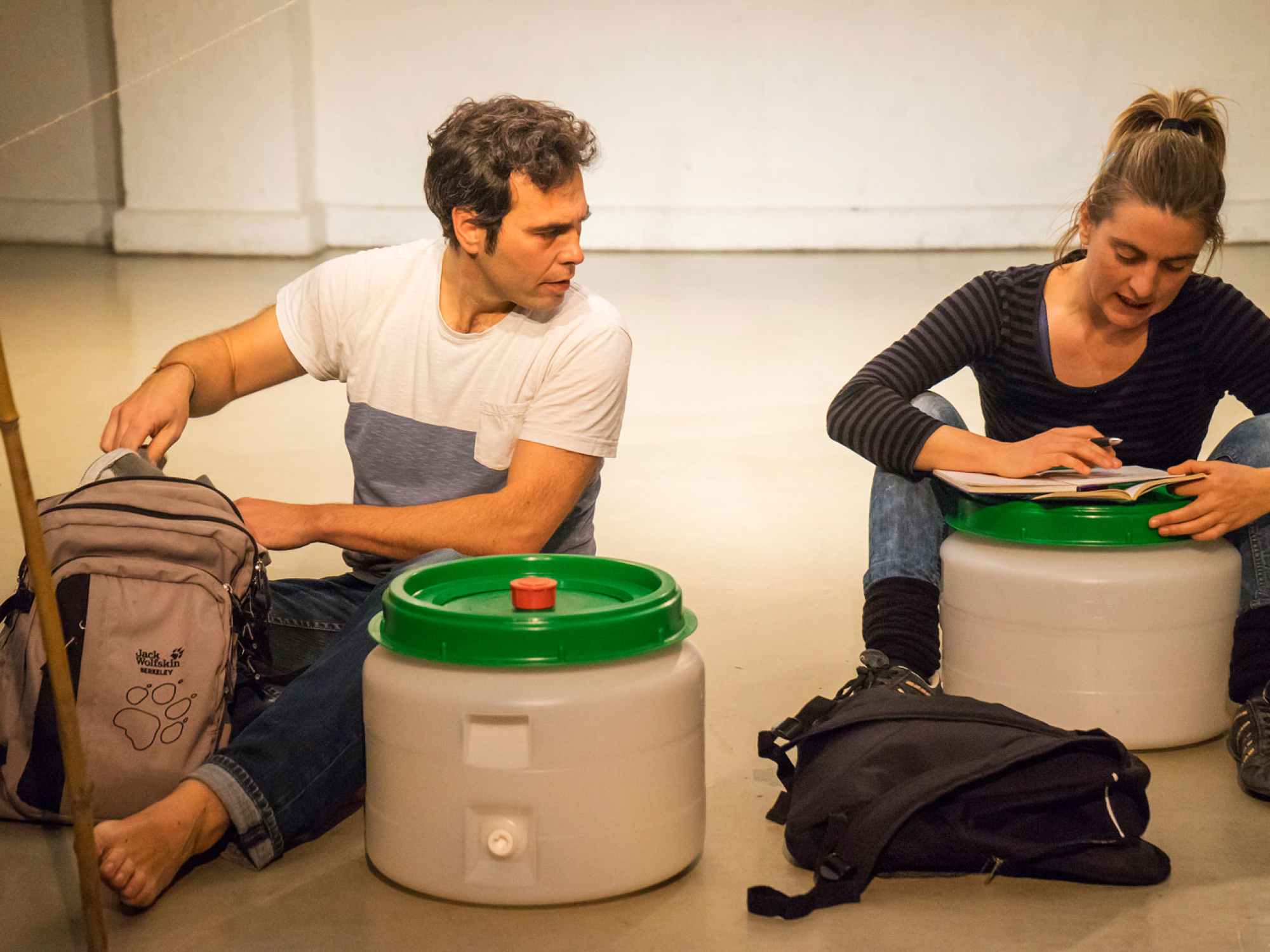 …stell dir vor, die Welt drehte sich um: Wir sind auf einmal die Flüchtenden. Ägypten gewährt Asyl, doch Asyl ist keine Urlaubsreise nach Luxor. Die beiden Protagonisten des Stückes fordern knappe 60 Minuten lang die Phantasie des Publikums heraus. Mit einfachsten Mitteln, nah dran am Publikum spielen sie das Gedankenexperiment durch. Wir werden von den Behörden übersehen oder verfolgt. Nun sitzt uns die Angst im Nacken.